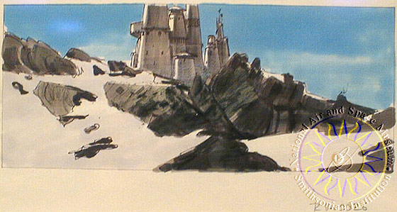 That’s not all that came from the annals of the Star Wars archives. Briefly after their brush with Baba and Evazan, Jyn talks briefly with Îmwe who is described by Cassian as a Guardians of the Whills, a clear callback to George Lucas’ initial pitch for the Star Wars story as told by immortal beings called Whills.[4] The basis for the Whills turned into the general idea of the Force. Still, with Jedha being as significant to the Jedi and those that followed them as it is described, I feel as if the newly canonized concept of the Whills may reemerge in Episode VIII. [5] Most interestingly though, was the reintroduction of Darth Vader’s castle. In the early stages of Empire Strikes Back, Ralph McQuarrie produced artwork for Darth Vader’s private residence. A castle first on a snowy planet, then moved to a molten one (this McQuarrie thumbnail particularly resembles what’s on screen) not unlike Mustafar. [6] This idea was used in several EU games and books, but now that it’s canon, it adds an entire new layer to what we know of Vader. The entire sequence there is one of the most memorable and surprising of the entire film.